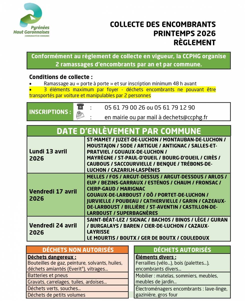 Vous avez de vieux meubles à évacuer, un canapé hors d'usage, un électroménager encombrant ? Chaque année, la communauté de communes propose deux collectes d’encombrants par commune. Les prochaines tournées ont lieu mi-avril 2026. Consultez les dates de passage dans votre commune et inscrivez-vous dès maintenant pour bénéficier du service.