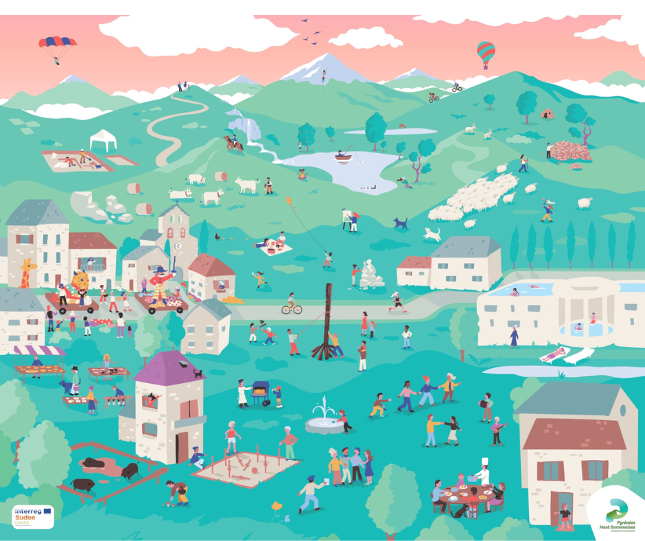 L’ensemble des partenaires s’est engagé dans la réalisation d’outils pilotes. La Communauté de Communes Pyrénées Haut Garonnaises a choisi pour son expérience pilote de s’adresser aux enfants à travers le jeu et de favoriser la transmission intergénérationnelle du patrimoine culturel immatériel de son territoire :