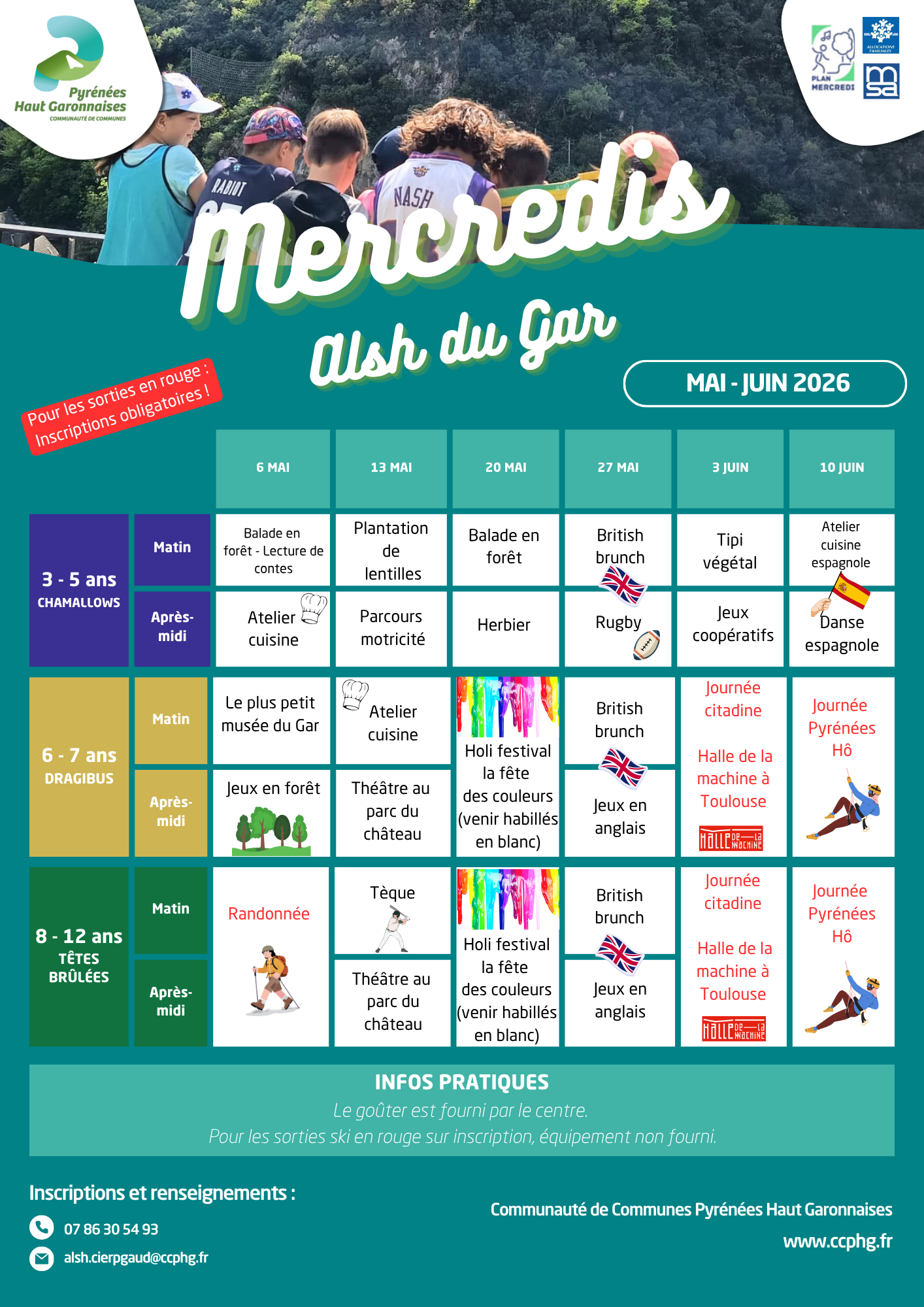 Les inscriptions doivent être effectuées par mail à : alsh.sauveterre@ccphg.fr
